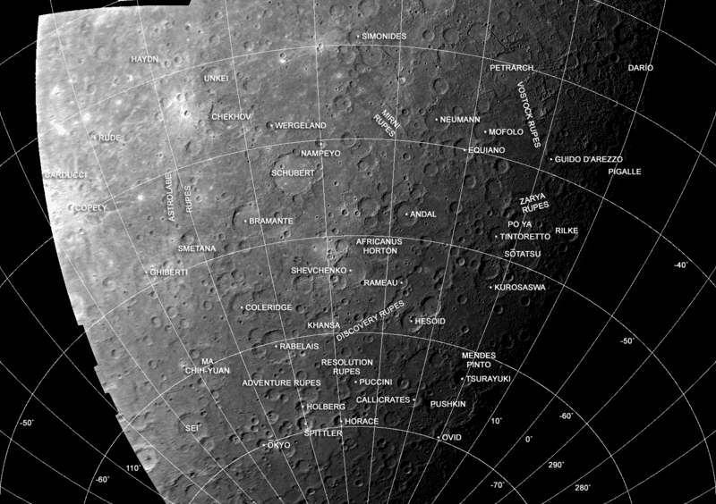 В 1974-1975 роках космічна станція “Марінер-10” вперше зблизька сфотографувала Меркурій, на фотографіях можна було розгледіти сотні кратерів. Цікаві факти про Шевченка полягають і в тому, що один з 300 кратерів був названий на честь Тараса Григоровича. Діаметр кратера “Шевченко” – 143 кілометра.