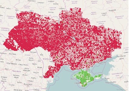 А цю карту як на мене найлегше розгадати. Це поширення росіян територією україни. Трохи несподівано, що чимало червоних цяточок, які свідчать про відсутність етнічних росіян в одеській та особливо в полтавській області.