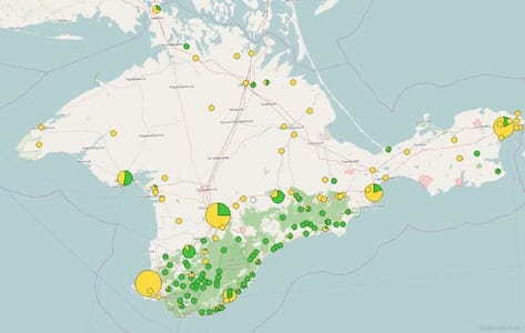 Гори та південний берег були майже повністю татарськими, за винятком російських анклавів (Севастополь, Ялта, Феодосія).